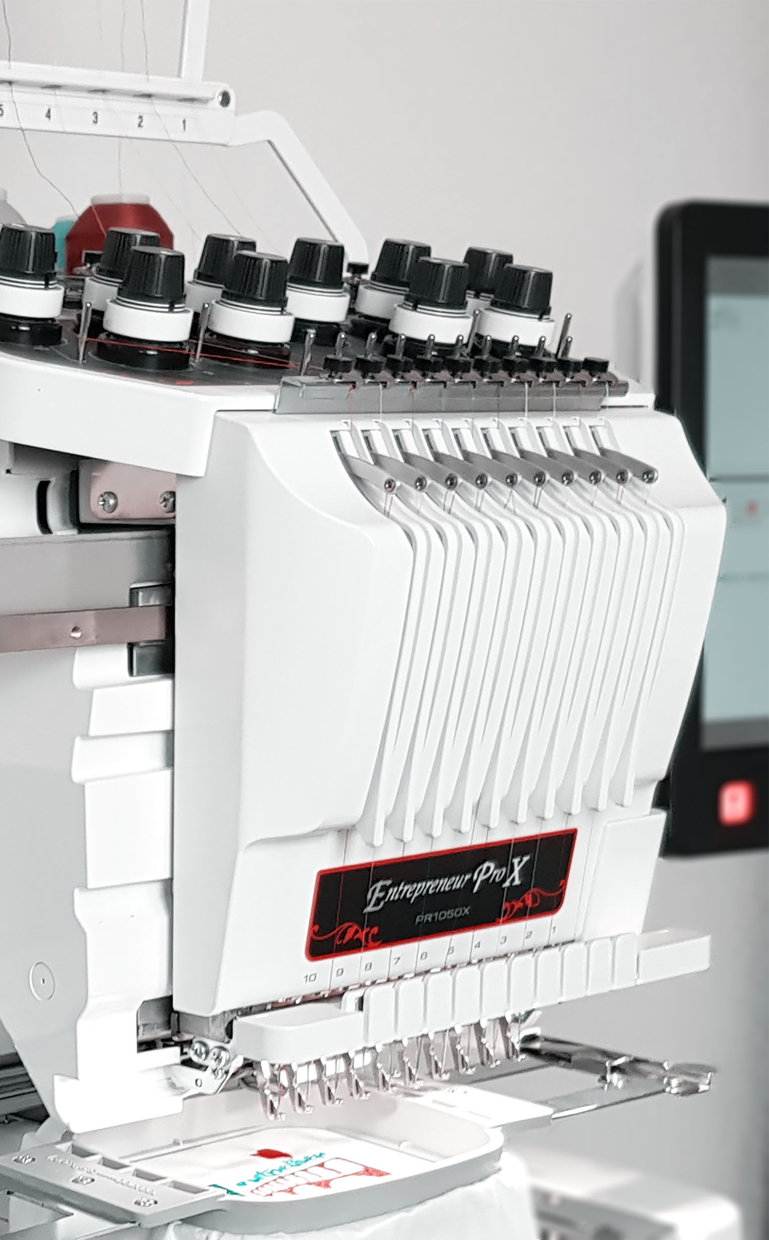 Ses 10 aiguilles haute vitesse avec enfilage automatique, tri des couleurs … contribuent à rendre notre travail réactif et efficace.